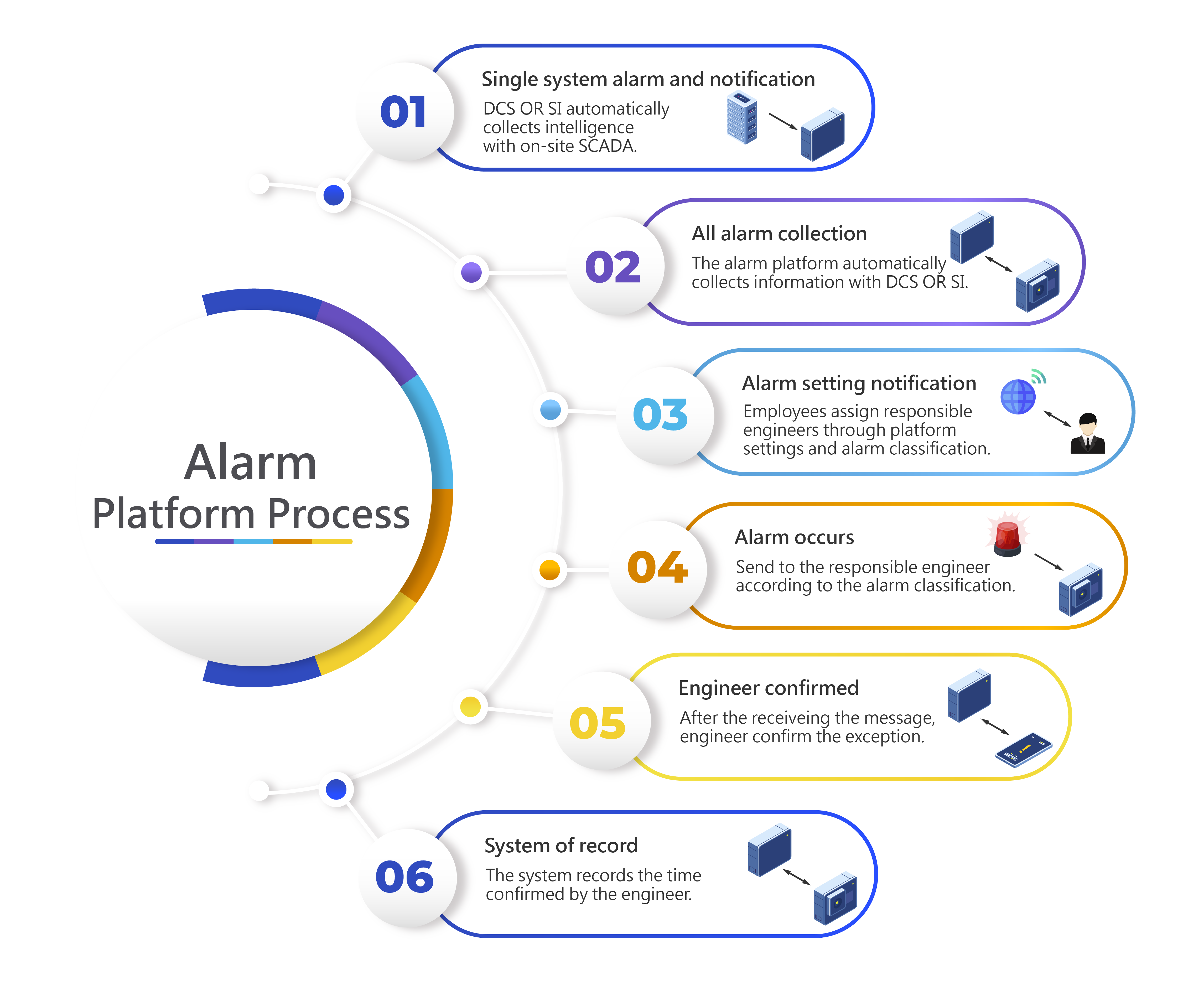 Alarm System peforms the function of monitoring and controling facility. It can monitor facility, also watch the valus's change. In case of value's abnormalities, It can inform relevant personnel that realize effective processing and operation.